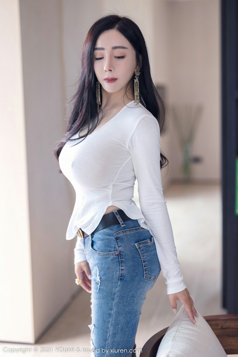 模特@允爾 写真发布,牛仔裤与白纱上衣搭配,婀娜丰腴身姿妩媚动人,全套写真共68P,希望大家喜欢和多多支持。