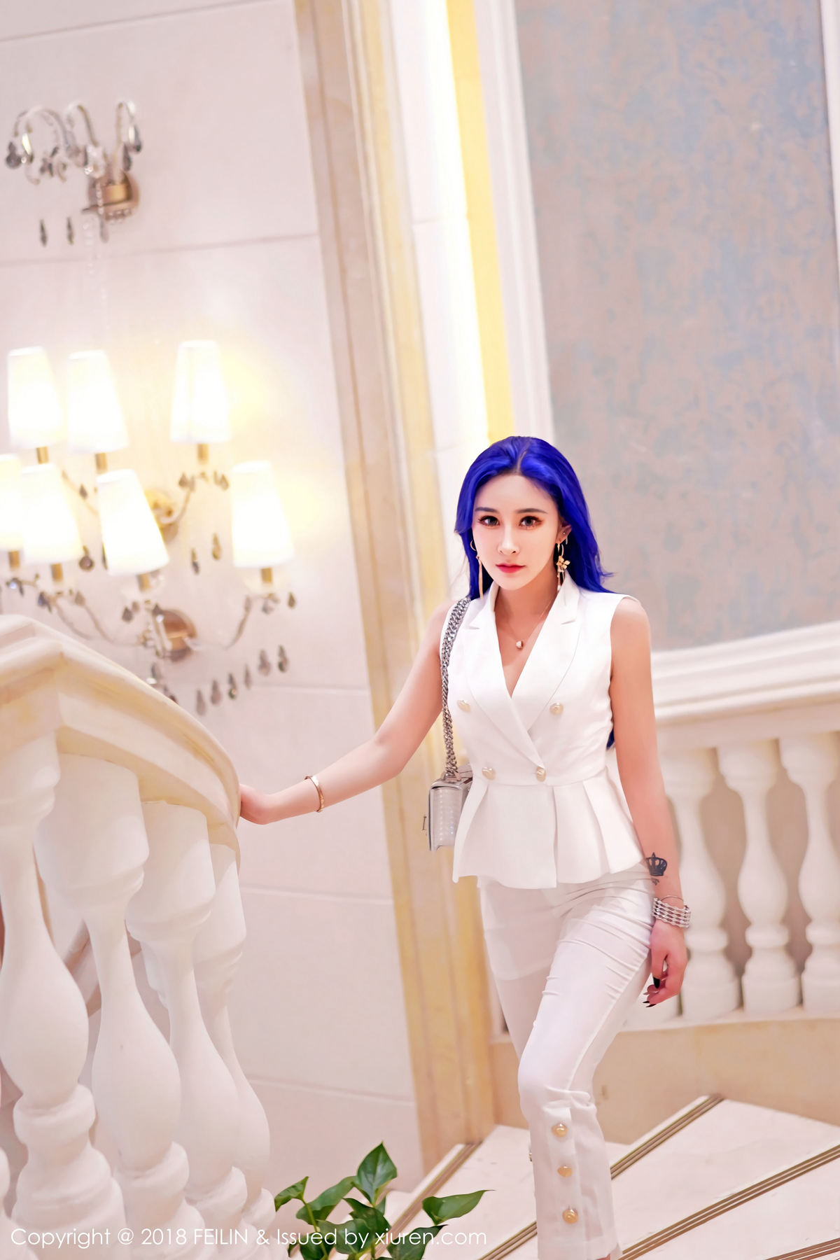 模特@喵莫儿首套写真发布,引人瞩目的蓝色头发如同花蕊,精致如瓷娃娃的面容下偏偏有着一身凹凸别致的惹火身材,她的酒窝也是一种酒,可以让人醉